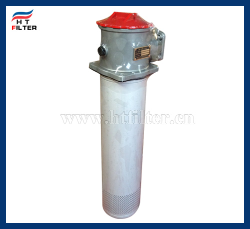 6.具有目测指示和电发讯二合一发讯装置、溢流管、积污盅:当滤芯逐步堵塞后,可在目测表上观察滤芯堵塞情况,同时还可以接电发讯(发讯值为0.35MPa)。在滤芯底部设置溢流管及积污盅,更换滤芯时可随同一起带出,从而避免了污染物重新掉入油箱内的现象。