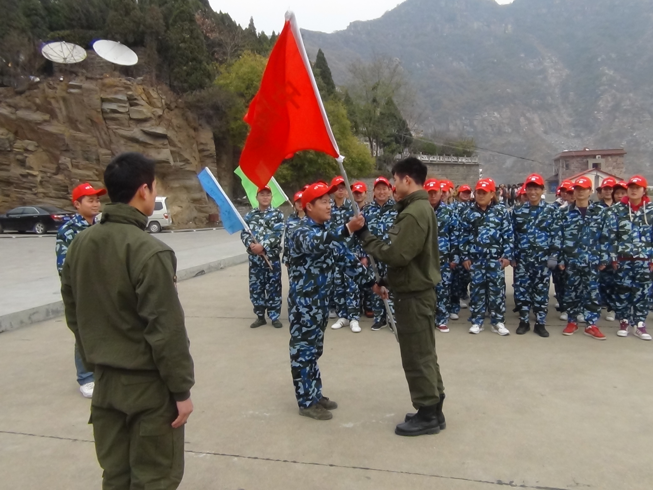 开训照例是领导出场,安总还是那么文质彬彬的,讲话后,把公司的旗帜交给教官