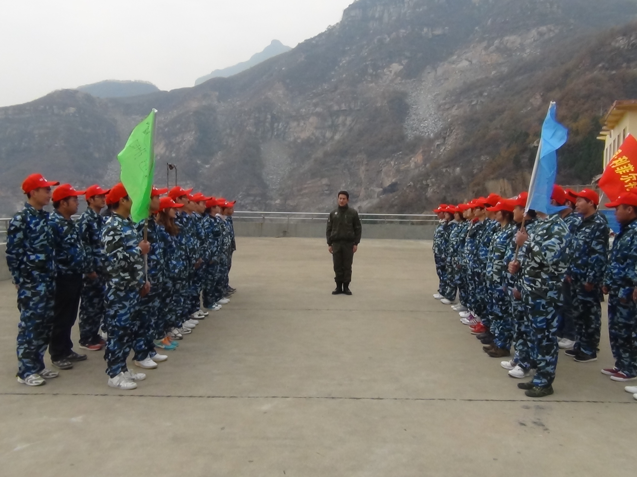 清晨,尖锐的哨声响起,公司全体员工集合在八里沟的训练广场