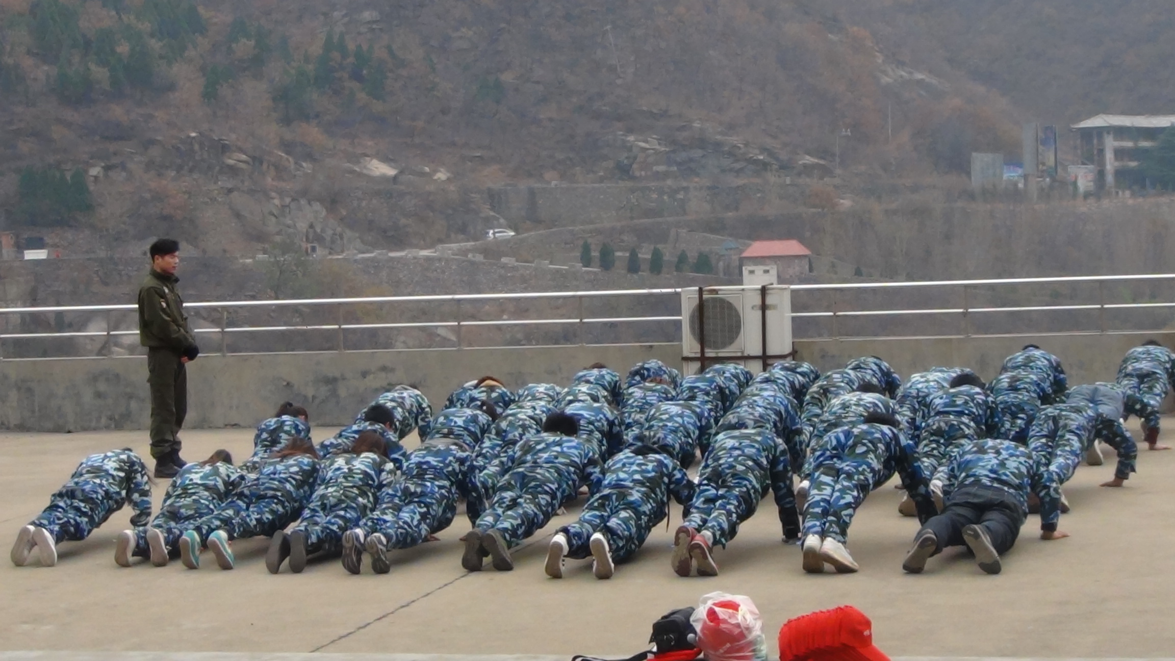 全体做俯卧撑,锻炼体能和意志力